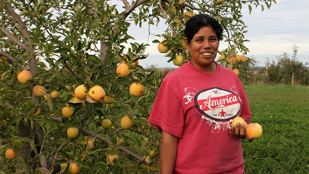 On a warm October afternoon Veronica Jaramillo walks through rows of skinny apple trees on the orchard where she works as the sun sinks behind rolling Missouri hills. The 30 year-old migrant farmworker reaches into a tree on the Waverly, Mo., orchard, and in one fluid motion, picks a Golden Delicious apple. “I don’t like…