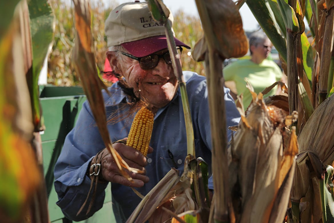 Dick Humes squinted and sweat as he moved down a row of corn. He sliced through the husk with a metal hook in his right hand, snapped the ear from its stalk with his left and threw it over his shoulder into a wagon rolling alongside him. Every other second, the corn hit the floor…