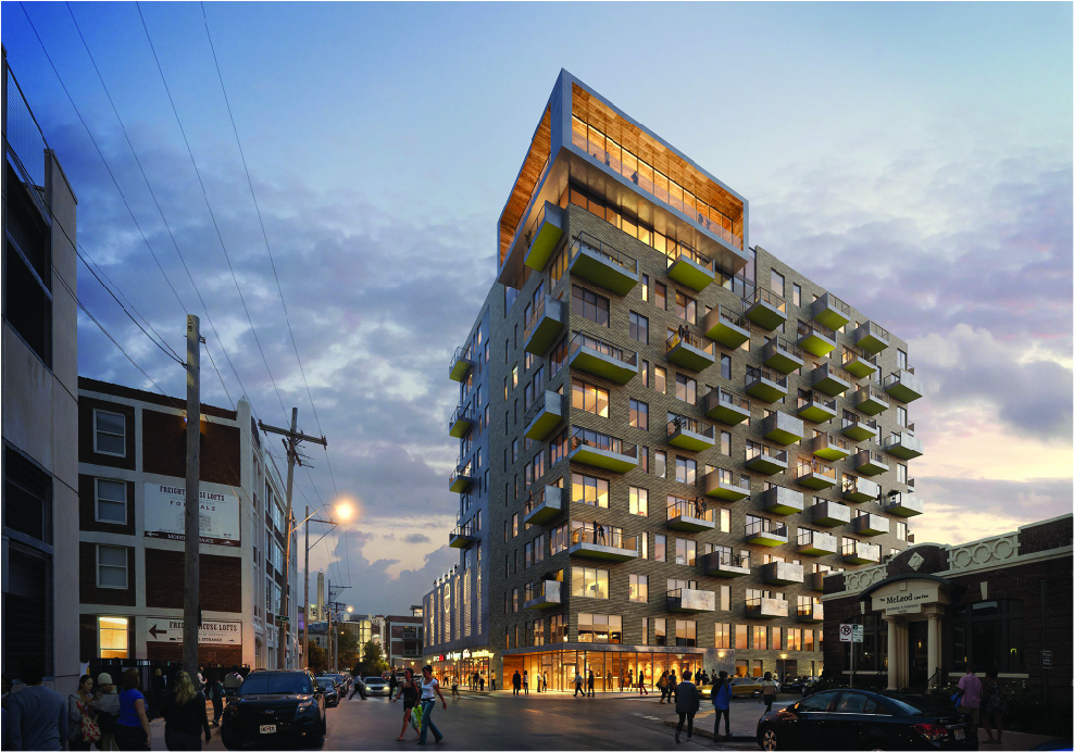 2100 Wyandotte St. | 126-unit, 12-story apartment tower | Cost: $40 million | Architect: HOK | General Contractor: JE Dunn | Completion early 2019