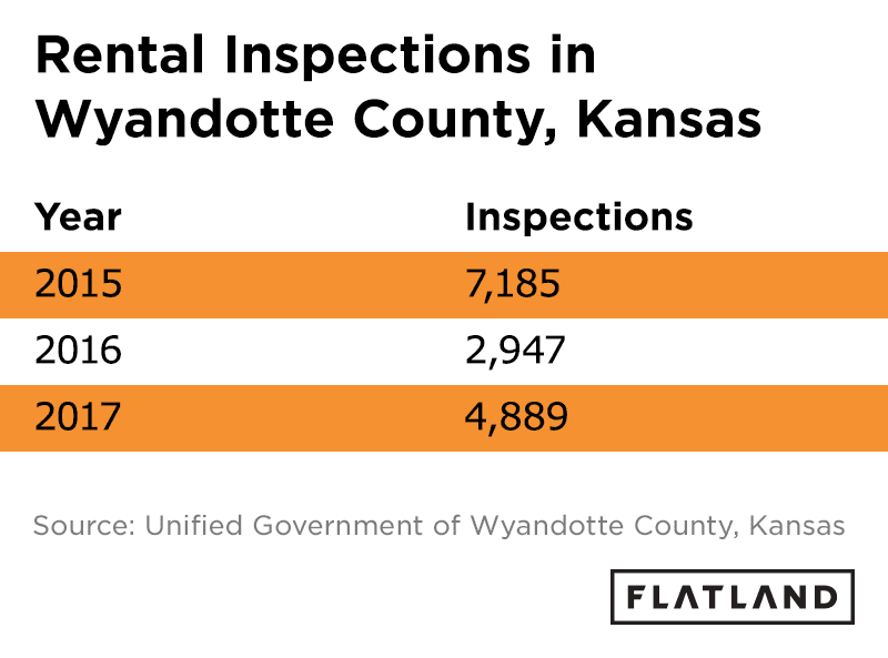Property inspections in Wyandotte County halved between 2015 and 2016. And while inspections rose in 2017, the total can’t be compared to past performance. Before the law change, inspectors looked at the outside and inside of units. But the office failed to adjust its record-keeping to account for the change in the law. County officials don’t know how often they were able to inspect the interiors.