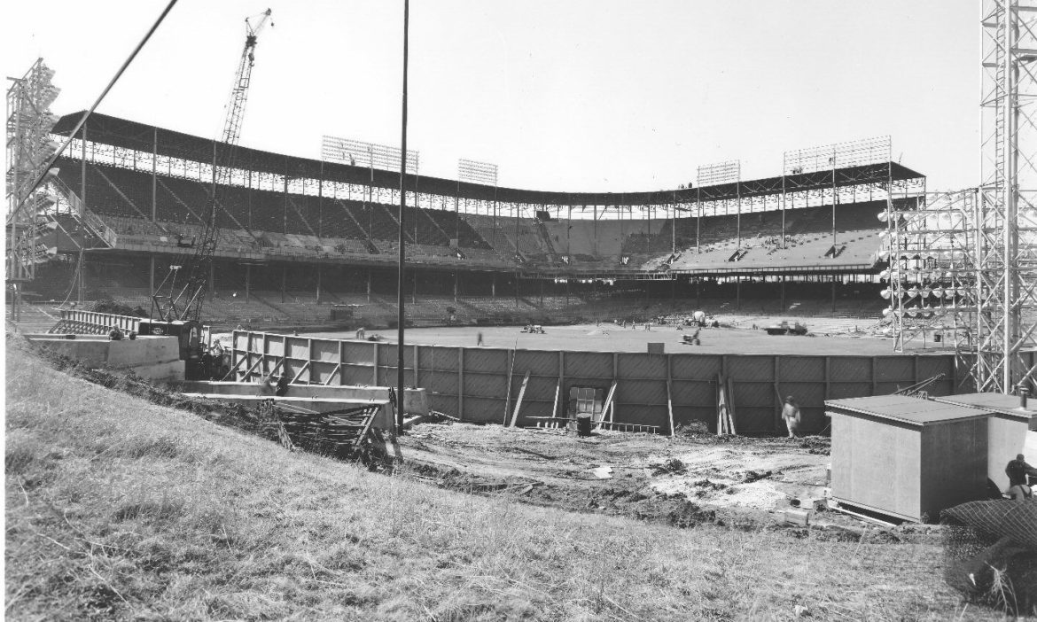 About a decade later officials fast-tracked the expansion of what had begun as Muehlebach Field when events conspired to bring the Philadelphia Athletics to town. The team played its first game in the upgraded and re-named Municipal Stadium in April, 1955.