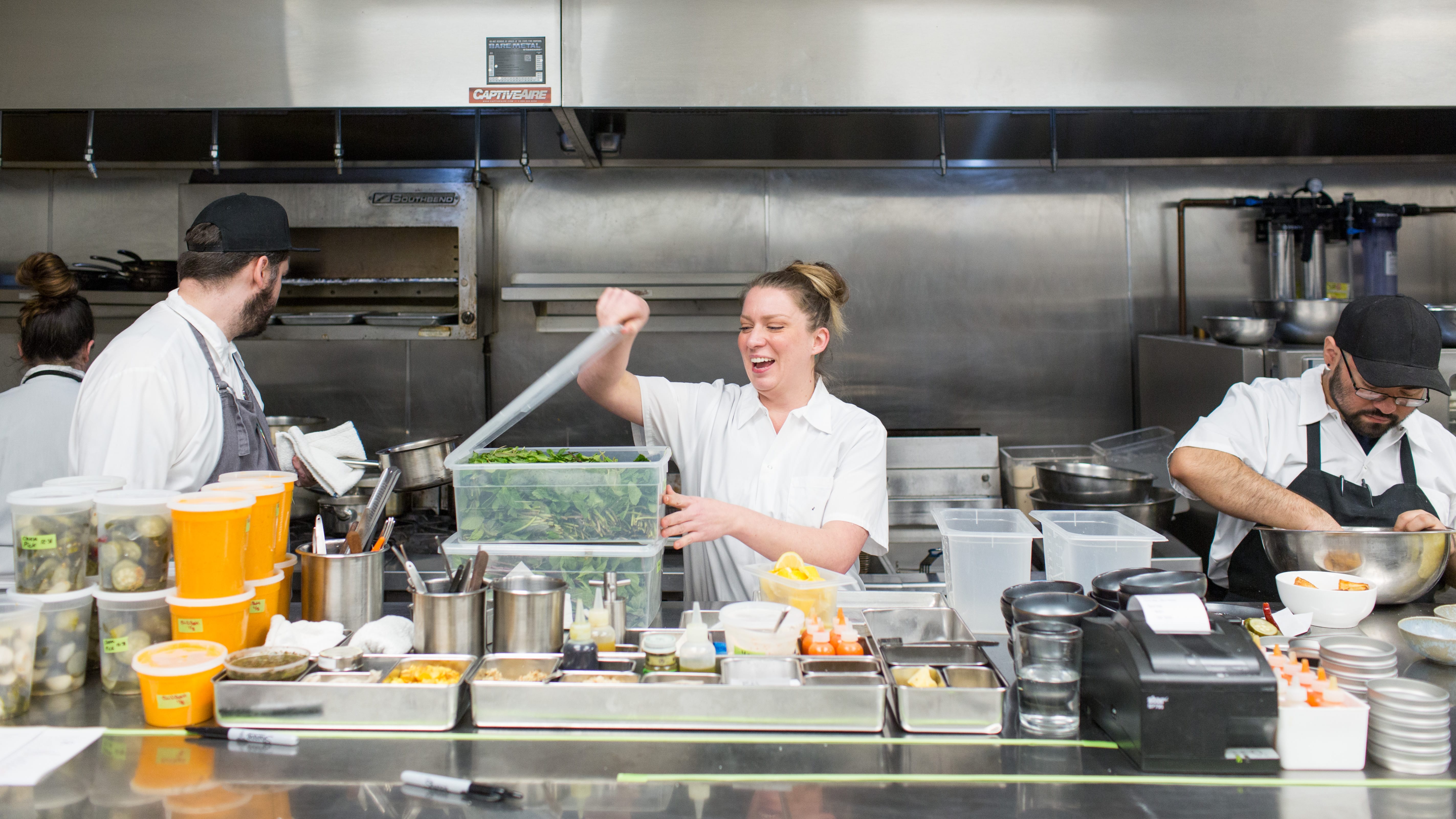 “We only have 170,” said chef de cuisine Dina Butterfield, her hair held up by a blue headband. “So, you can’t sell 200.”