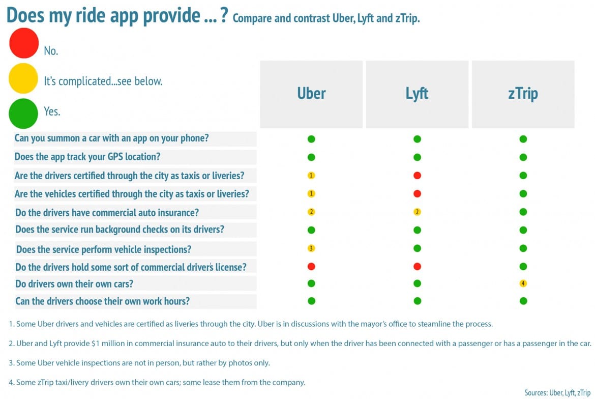 Does my ride app provide...? Compare and contrast Uber, Lyft and zTrip