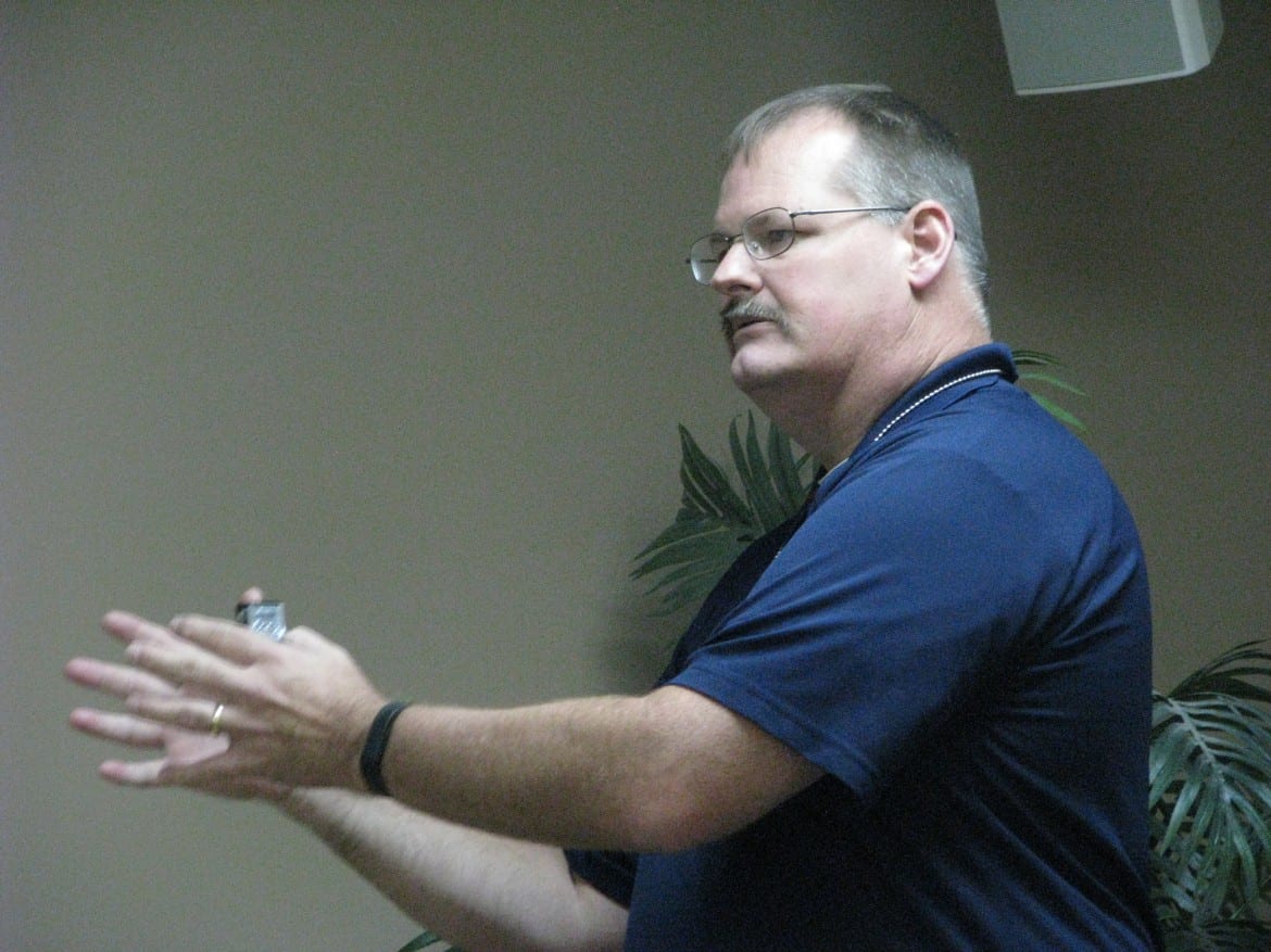 Steve McCorkill, a sergeant with the Shawnee Police Department and president of the Kansas Law Enforcement CIT Council, spoke at Thursday’s crisis intervention training event in Lawrence. (Photo by Dave Ranney/KHI News Service)