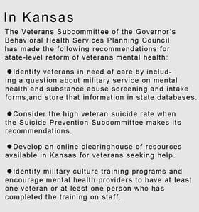 “Peer groups need to start,” said Anthony Webster, a U.S. Army veteran who served multiple tours in Iraq and Afghanistan and now works with Topeka resident Melissa Jarboe’s Military Veteran Project. “There needs to be some kind of veterans network with some guidance from doctors. There are guys that have the same issues. Some guys are more successful than others, and they can help with that.”