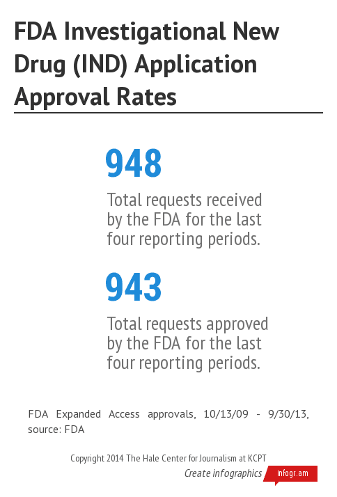 In the last four reporting periods, covering October 2009 through September 2013, the FDA received an average of 391 emergency requests from patients and approved all but five.