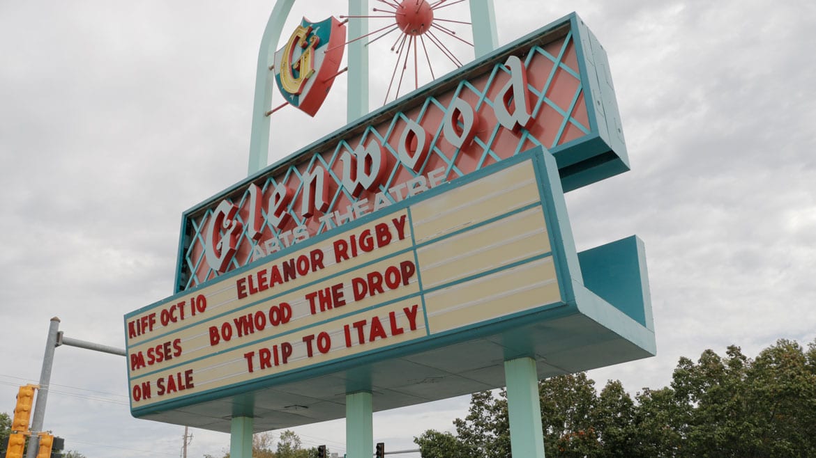 The marquee of the Glenwood Arts theater, part of the Fine Arts Theatre Group, is one of the most recognizable signs in Kansas City. (photo by Caitlin Cress/Hale Center for Journalism)