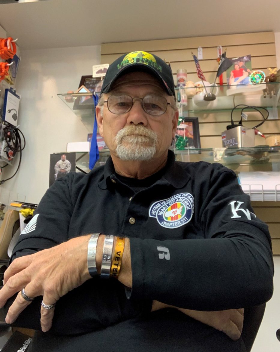 Randy Barnett, president of the Vietnam Veterans of America, Chapter 317, in Kansas City, wears two POW/MIA bracelets. (Courtesy | Randy Barnett)
