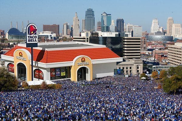 Finally, in Kansas City, a few Royals fans turned up to claim their free breakfast from Taco Bell.