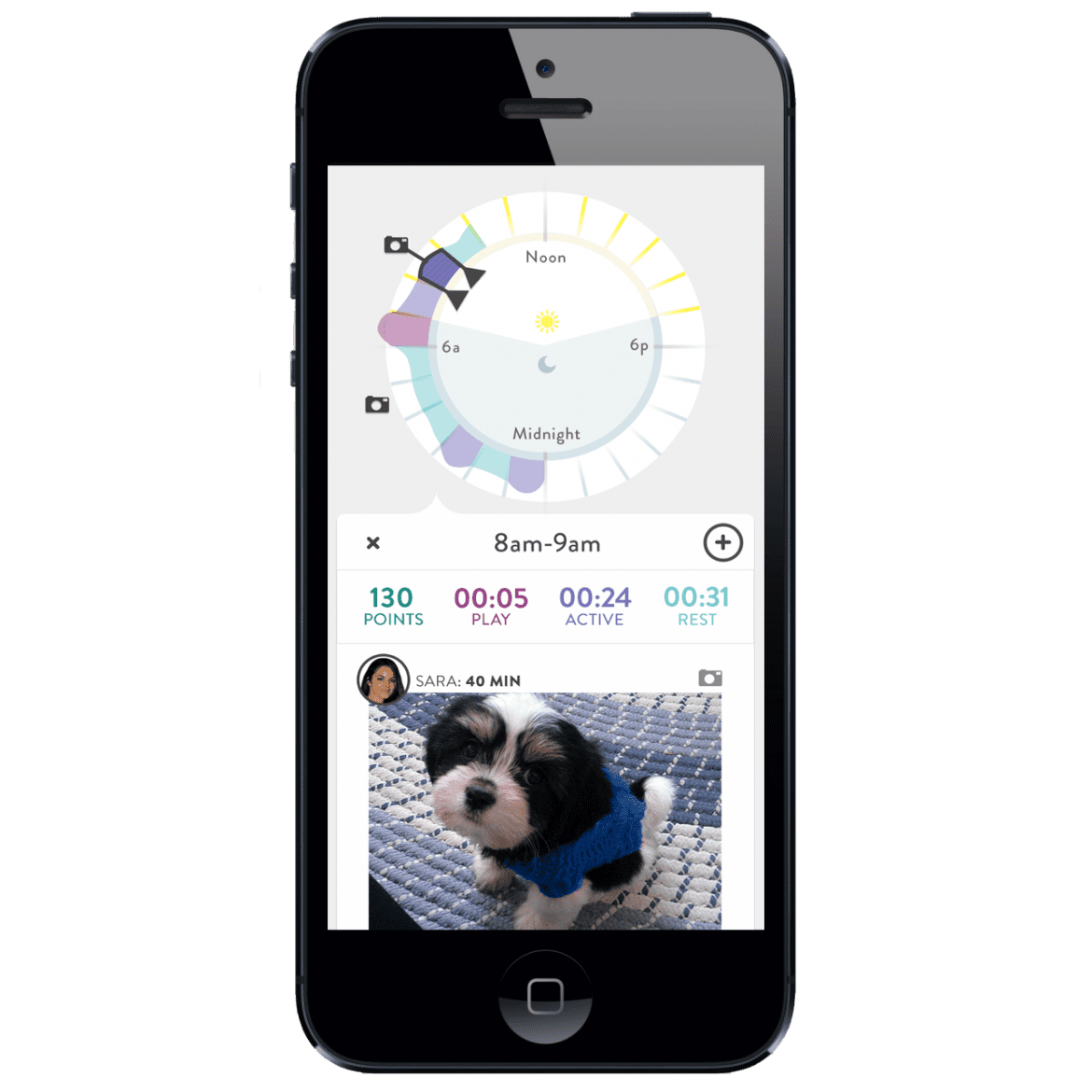 Fitbark tracks the family dog’s daily steps and hours of sleep, but also encourages family members to share photos and memories about the dog to create a full picture of the pet.