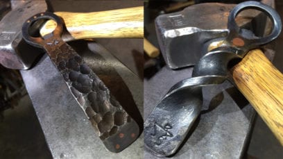 “Most start as a one-inch by quarter-inch flat bar or half-inch round or square rod. Almost all of them are one-of-a-kind. Some have copper inserts, rivets or inlays,” Schmid said. “This allows me to stay creative and try new things. It also comes with failures, but that’s part of the learning process.”
