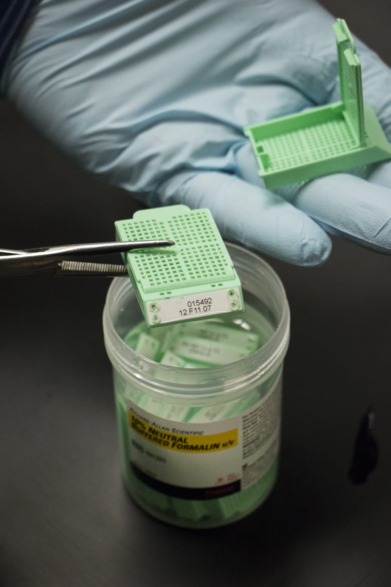 Some tissues preserved at the KU Cancer Center come from Truman Medical Centers immersed in solution.