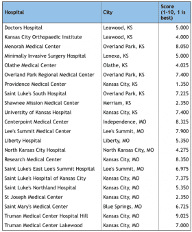 Here are the 22 Kansas City area hospitals scored for infection rates and other complications by the Centers for Medicare and Medicaid Services. Credit Stefani Fontana / for KCUR