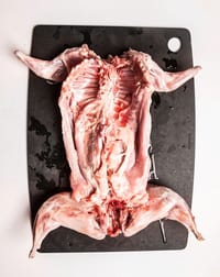 Rabbit, skinned and gutted, and ready to be made into rabbit stifado (a Greek stew with wine and onions) or rabbit ragu with penne and parmesan, a recipe devised by Horsey that has received rave reviews from Ugly Food readers in the UK. (Courtesy of Tanya Ghosh)