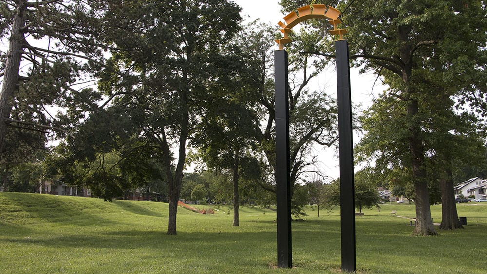In the 1970s, the Parks and Recreation Department collaborated with the Kansas City Art Institute to help beautify Kansas City while providing a showcase for artists’ work. Karen Slack was a student at KCAI who was killed during a hit-and-run in Manhattan, Kansas, in 1979. Her parents gave her sculpture to the city, and the department placed it at The Paseo, a location she had been considering for it.