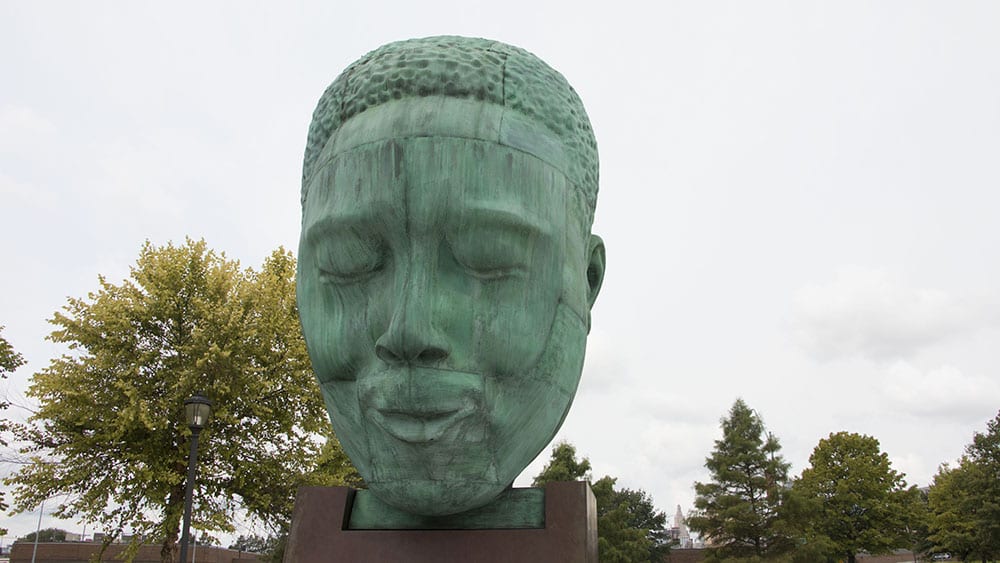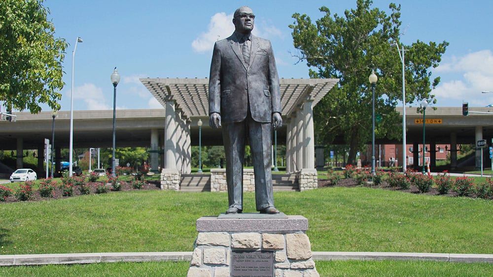 The Rev. John W. Williams is memorialized in 7 feet of bronze. Williams was a civil rights activist and pastor of St. Stephen Baptist Church, located on Truman Road and The Paseo. Tom Corbin, a local sculptor, was selected from a national competition. According to the Parks and Recreation Department, William’s widow liked the bust of her husband that Corbin submitted him to the competition, and he won unanimously.