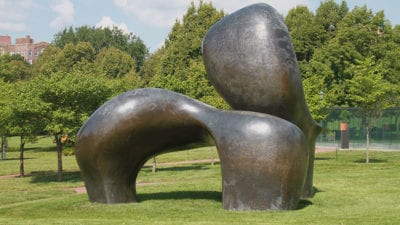 N. Clyde Degginger willed money to the city so it could purchase a bronze statue. Degginger owned a general store in Kansas, but he lived the last 40 years of his life in Kansas City. The sculptor, Henry Moore, designed the statue to complement the agriculture of the plains. Moore lived in England, which is where he got the inspiration for the abstract statue.