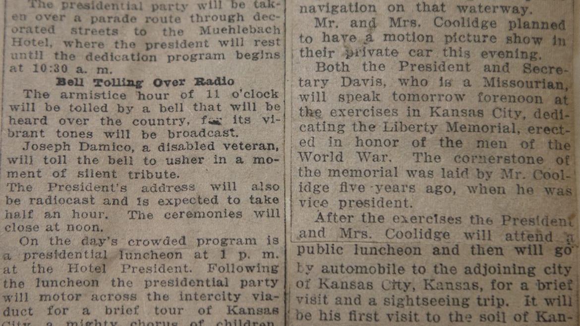 Nor does Damico remember any mention of his grandfather’s older brother, Joseph, ringing the memorial bell at the 1926 dedication of the Liberty Memorial — a celebration that included President Calvin Coolidge among a crowd of 150,000 people.