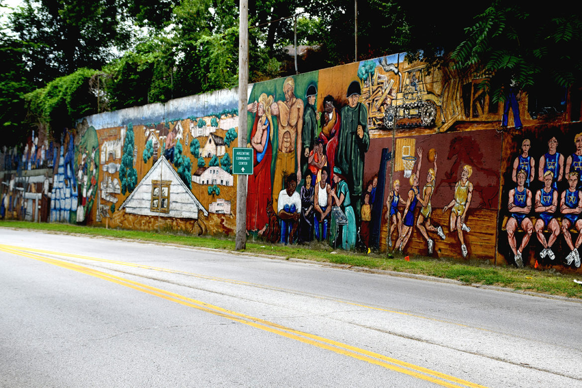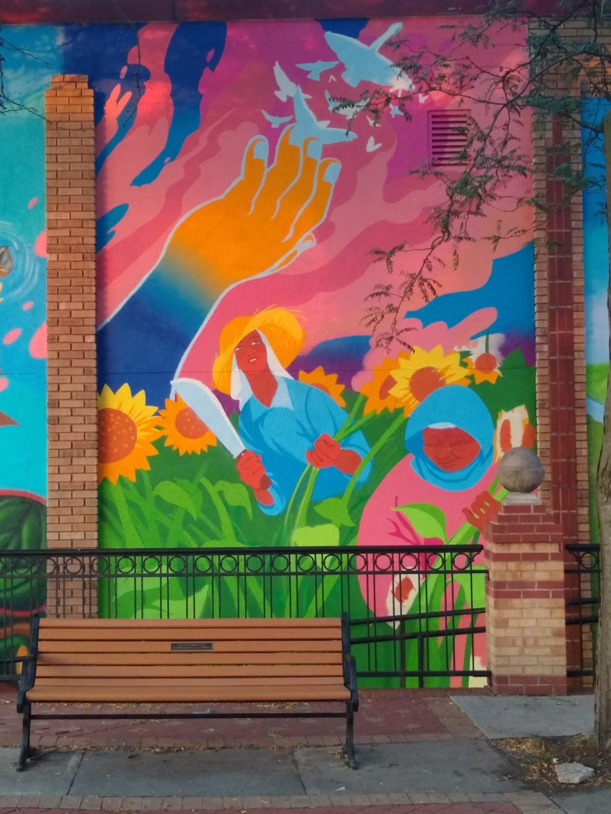 Take for instance the Argentine mural by José Faus, a well-known Kansas City artist, poet and teacher. He painted in the Argentine neighborhood of Kansas City, Kansas. When he got there, overgrown weeds and graffiti were rampant. But the mural transformed the area into a hub for conversation and community.