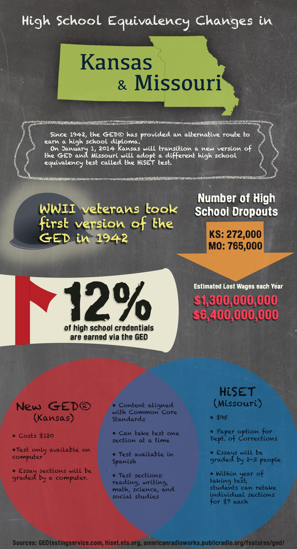 While Kansas will offer a new version of the G.E.D, Missouri will adopt the HiSET test.