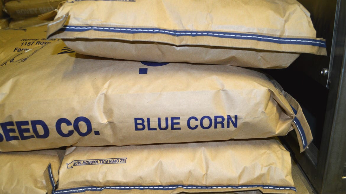Yoli Tortilleria uses non-GMO corn to make blue, red, and white tortillas. Their tortillas only have three ingredients: corn, lime, and water. The corn arrives on 2,500-pound pallets and is stacked high in the front room of their production facility.