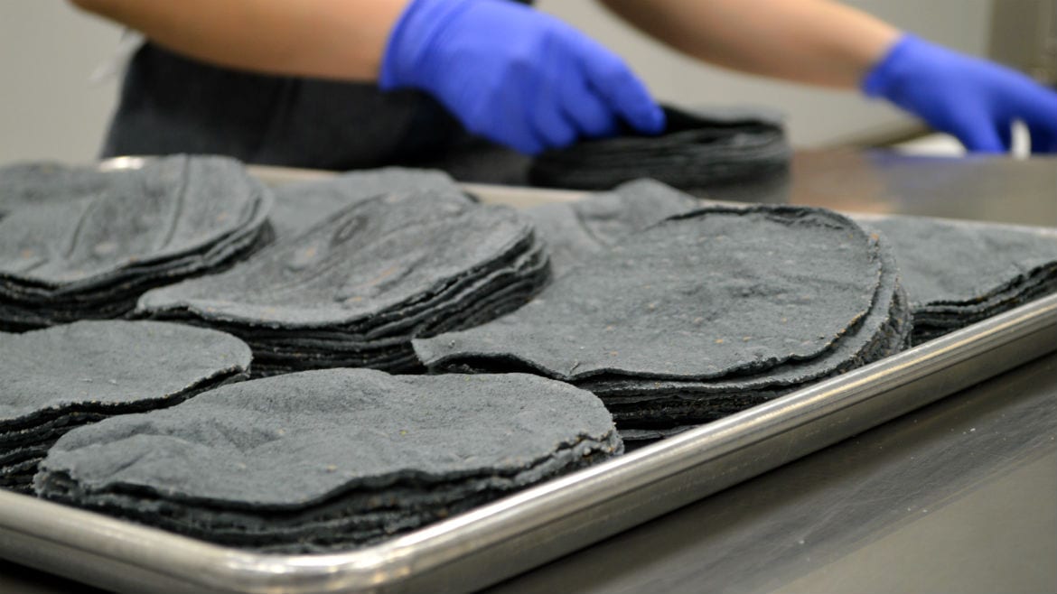 This is a closer look at the blue corn that will be fully cooked tortillas in about 15 minutes.